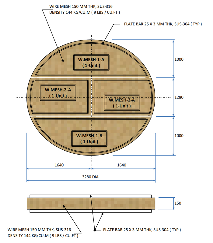 1) Yingdu supply and deliver 316 SS demister pad to fit into a vessel manufactured from 5.000 NB pipe (bore size of 4.813). (Assembly drawing attached).